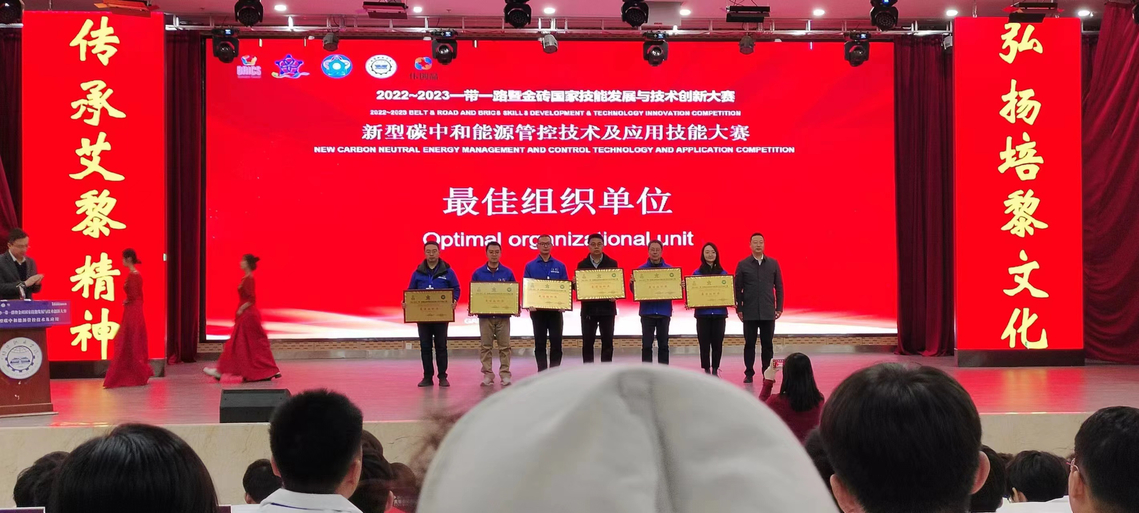 金砖大赛中国赛区竞赛全称为一带一路暨金砖国家技能发展与技术创新大赛,包括国内赛和国际赛。4月24日至27日,由于疫情原因推迟举办的2022年一带一路暨金砖国家技能发展与技术创新大赛之新型碳中和能源管控技术及应用赛项中国赛区决赛在培黎职业学院举办,来自全国18个省市的56支本科院校和高等职业院校代表队共同参加了此次比赛。我校yl6776永利集团光伏工程技术专业3名学生在比赛中成绩优异,喜获团体一等奖。为了表彰学校在赛事组织过程中的优异表现,主办方为学校颁发了最佳组织奖。