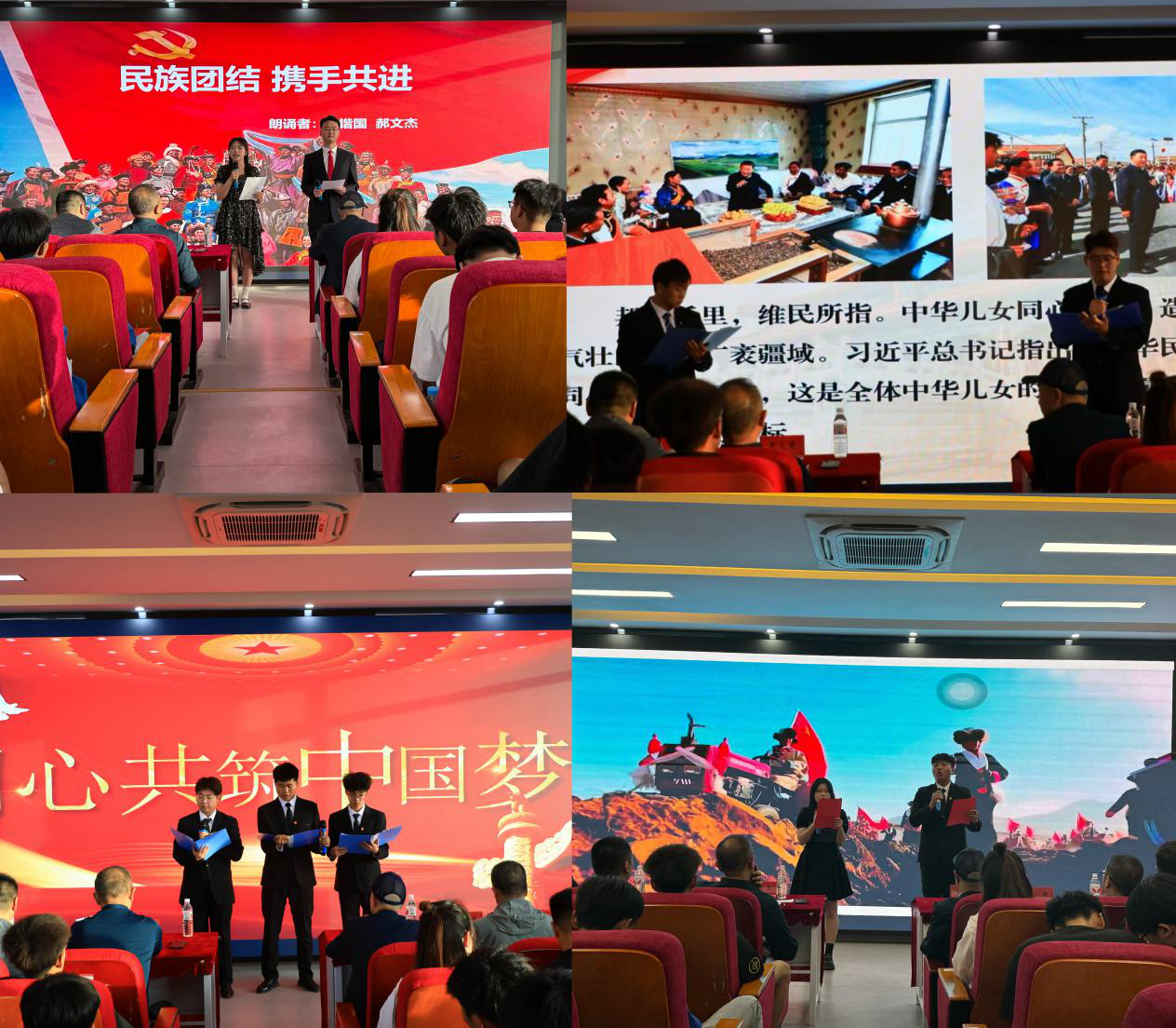 比赛现场,各参赛队伍深情并茂、满怀激情,从不同视角讴歌了维护民族团结、珍视民族团结的感人事迹,抒发了自己对民族团结的情感,表达了各民族同呼吸、共命运、心连心的浓厚感情。朗诵之声不绝于耳,强国之音掷地有声。从吟诵到表演,从理解到展示,同学们不仅表现了自我的良好风貌,而且在展演中深刻领悟,在创造中实现深切共鸣。