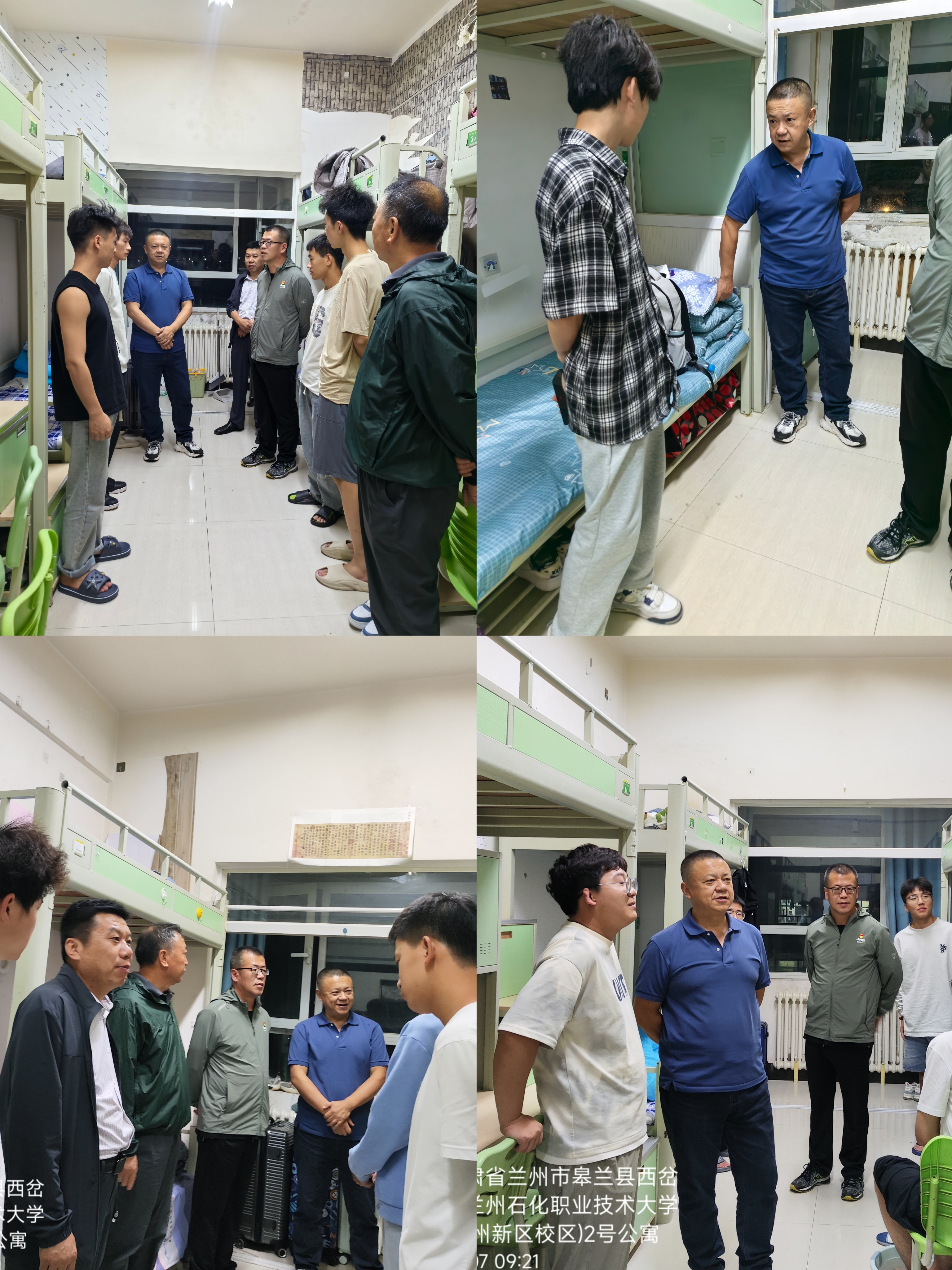 学院领导带领辅导员深入各迎新工作点、学校门口、食堂、学生公寓等,详细了解新生报到人数、报到流程、入住手续办理、保障服务措施等,祝福新生们要尽快适应大学生活。在学生宿舍,学院领导和学生及家长亲切交谈,对新同学的到来表示热烈欢迎,并与同学们亲切交流,听取学生心声,对同学们在专业学习、大学生活等方面的困惑和疑问一一进行了详细的解答,鼓励同学们要尽快适应大学的学习、生活节奏,尽快融入学院这个大家庭。叮嘱同学们自主自立、自律自强,尽快熟悉校园生活环境,遇到困难和问题及时与班主任和辅导员老师沟通解决。