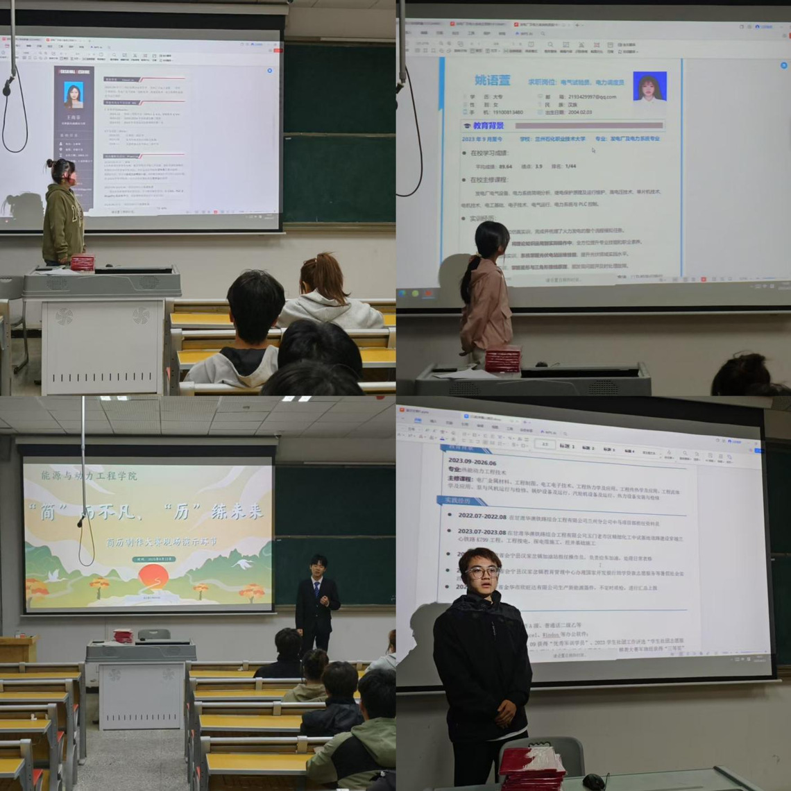 大赛分为简历制作和模拟面试两个环节。在简历制作环节,同学们充分结合能源动力类专业优势、实践经历与职业规划,精心设计简历,突出个人特色与求职意向。学院邀请了学院领导、专职就业辅导员、专任教师组成评委团,从简历的内容完整性、针对性、创新性以及美观度等多维度进行评审,对每份参赛简历都给出了细致的反馈和改进建议。