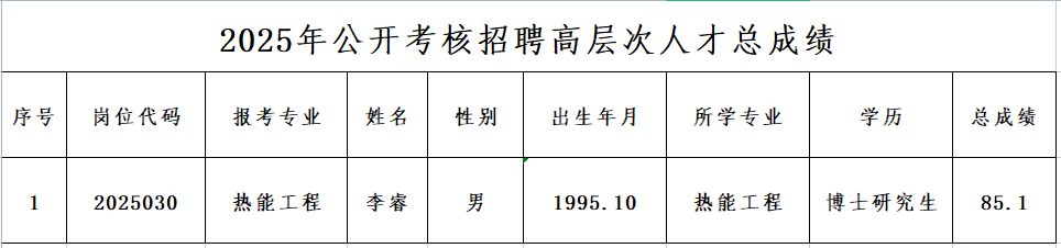 关于2025年公开考核招聘高层次人才总成绩的公示